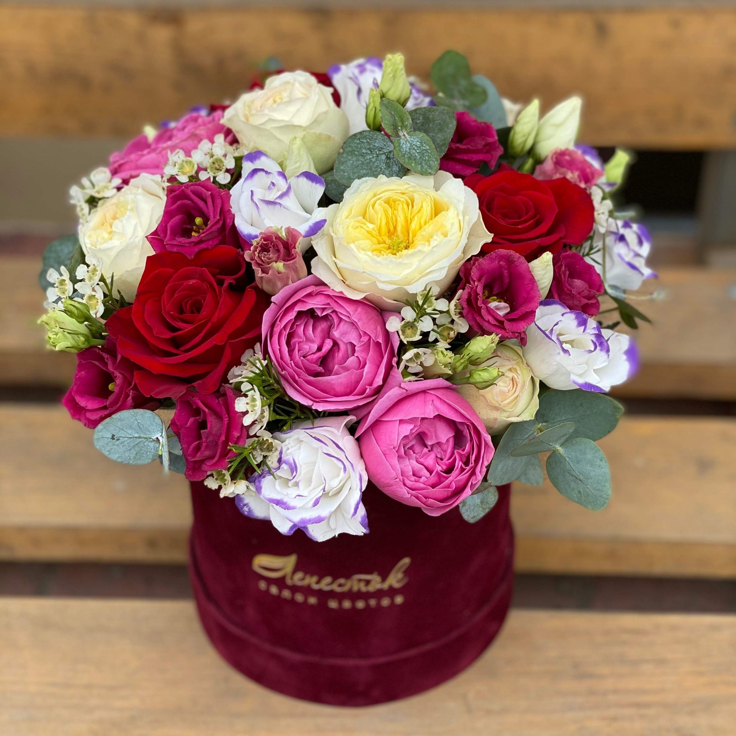 Гвоздики, Лизиантусы, Розы, Тюльпаны