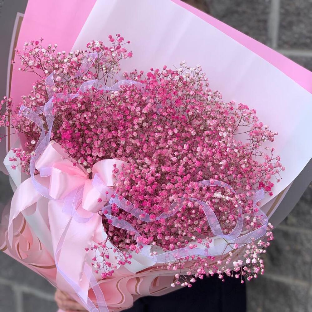 Гипсофила – 13 шт.Упаковка дизайнерская – 2 шт.Лента атласная – 1 шт.
