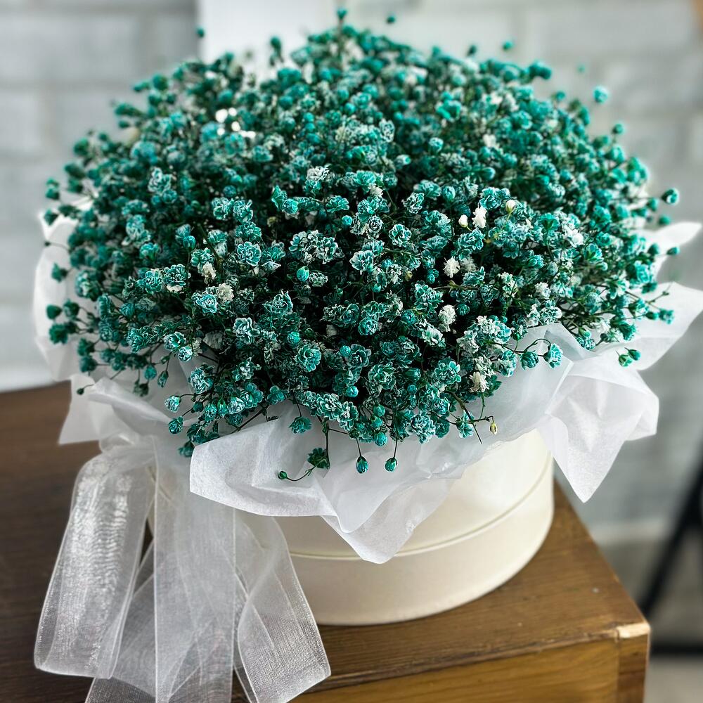 Композиция в шляпной коробке с необычной гипсофилой!Которая очень-очень долго простоит!Гипсофила,которую очень-очень любят девушки!Цветы,которые очень-очень любят котики)Милый комплимент по поводу и без!С Уважением VaraBoro flowers