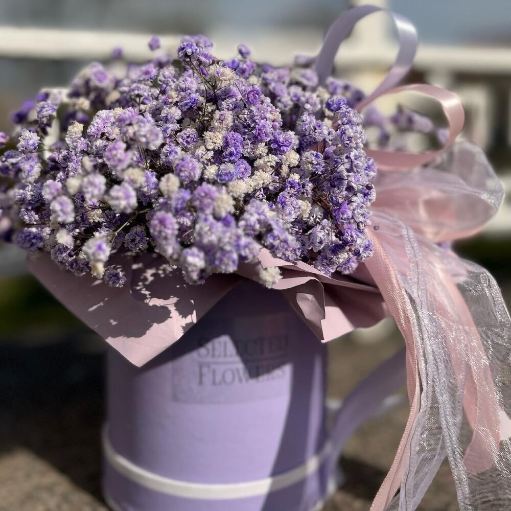 «Лавандовое созвездие» Букет из розы, гвоздики, статица и хлопка