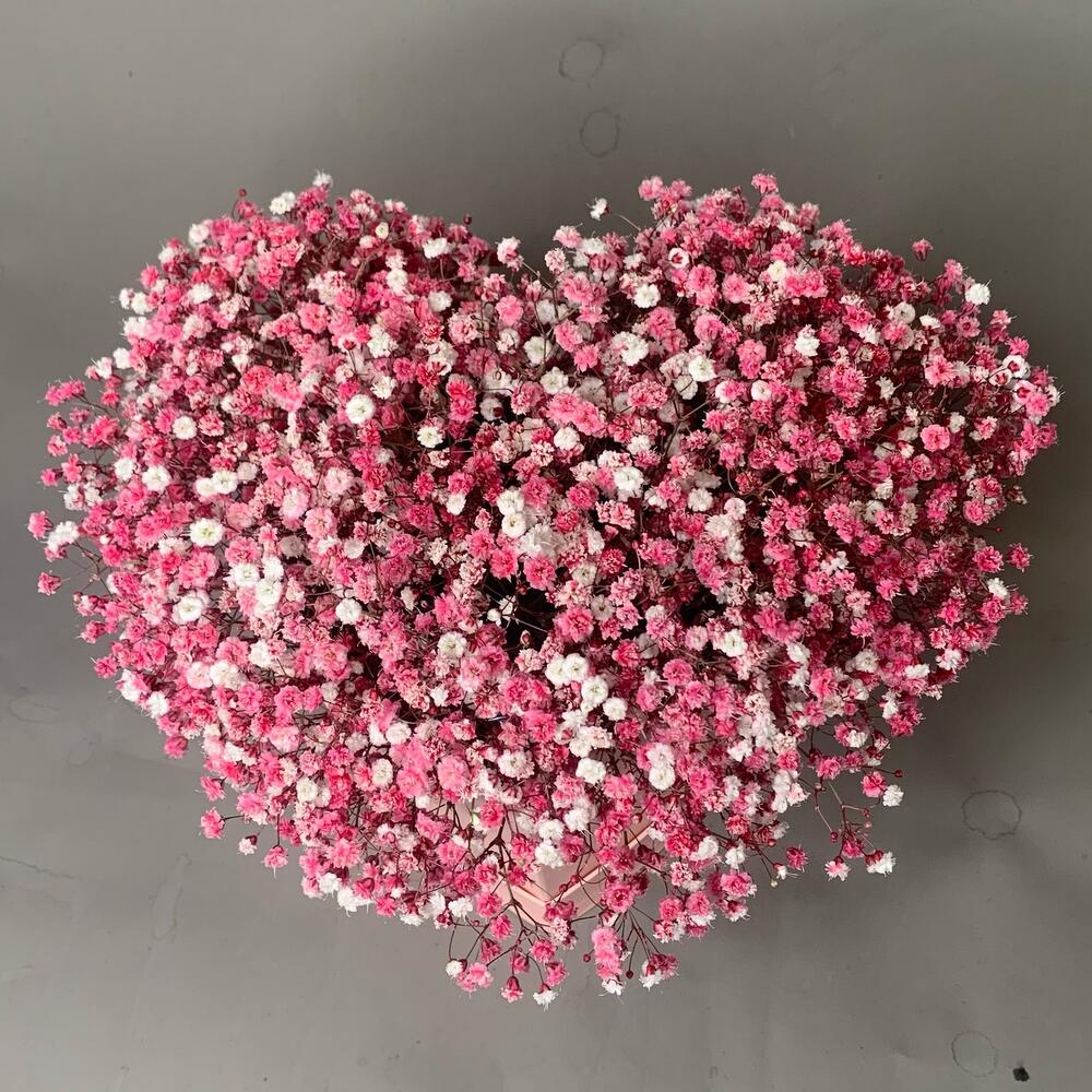 Гипсофила – 7 шт.Коробка сердце – 1 шт.
