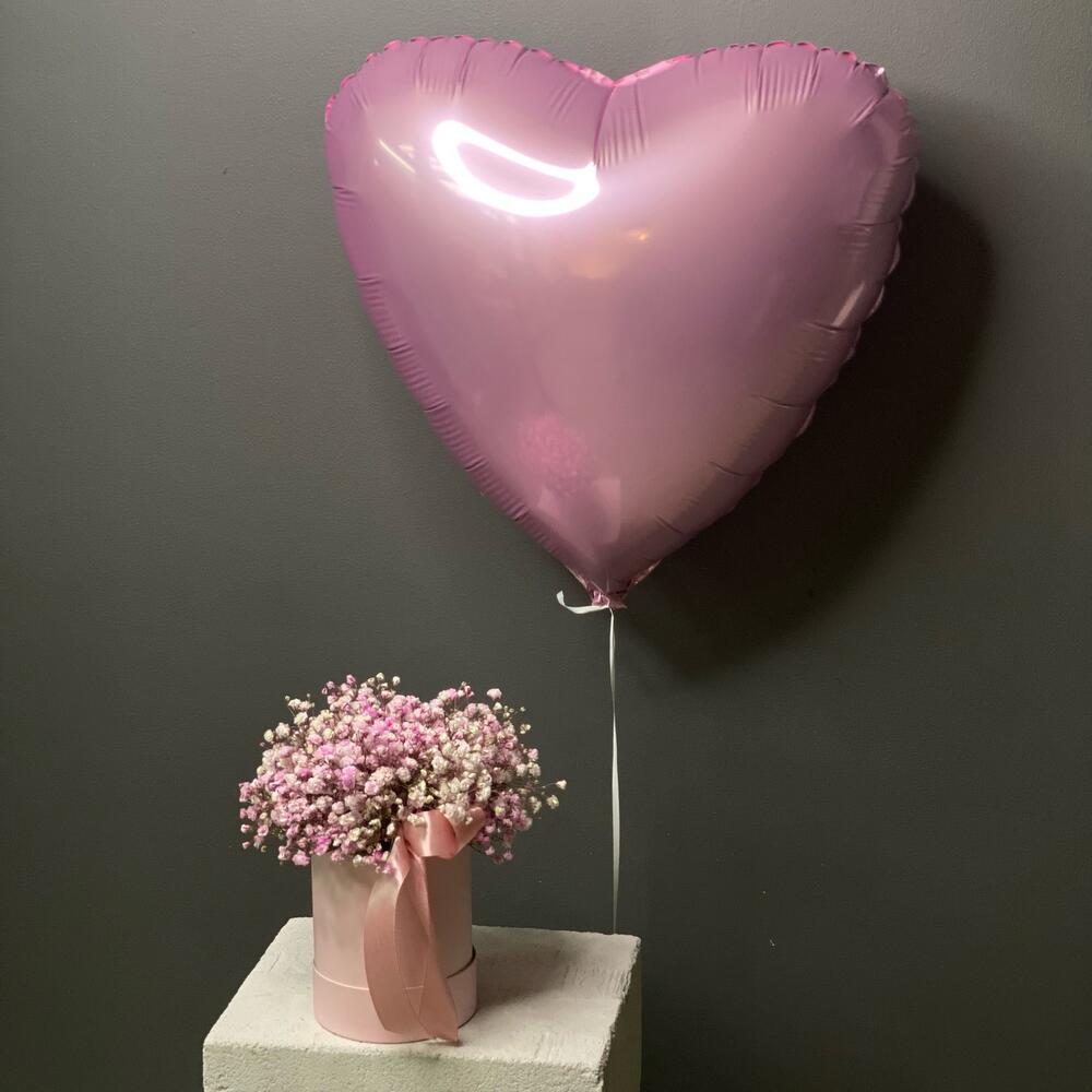 Упаковка – 1 шт.шарик фольгированный сердце – 1 шт.композиция из гипсофилы – 1 шт.