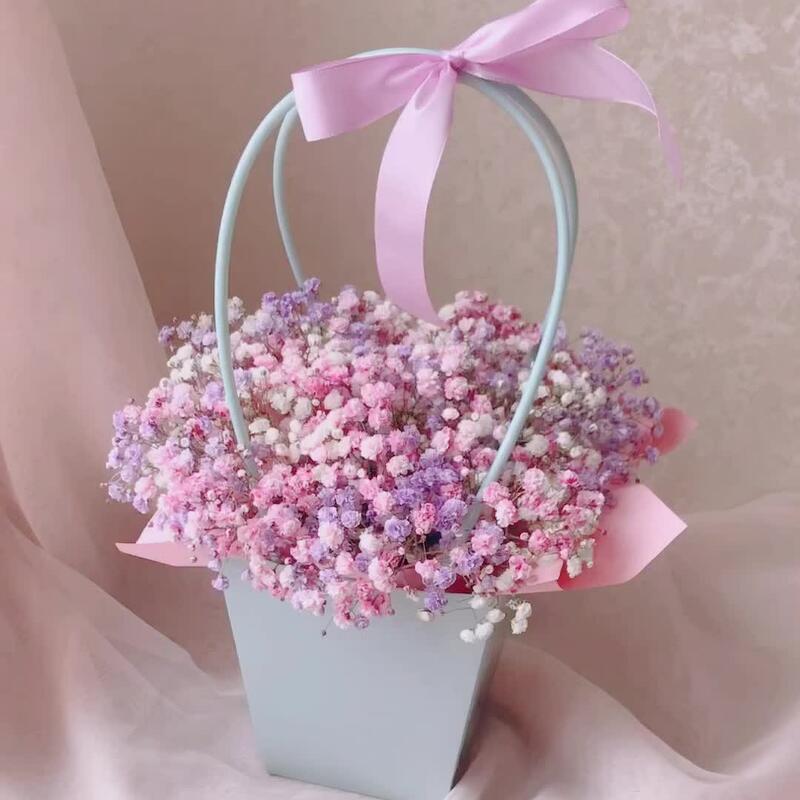 Лента атласная – 1 шт.Сумочка – 1 шт.Флористическая губка – 1 шт.радужная гипсофила – 5 шт.