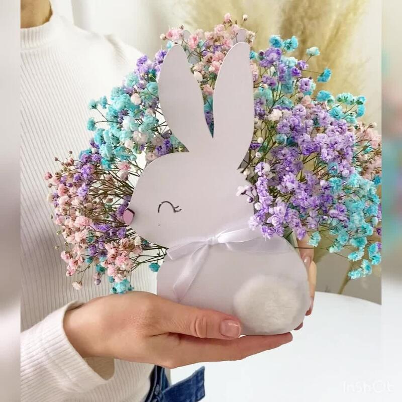 Гипсофила – 3 шт.Флористический оазис – 1 шт.зайка кашпо – 1 шт.