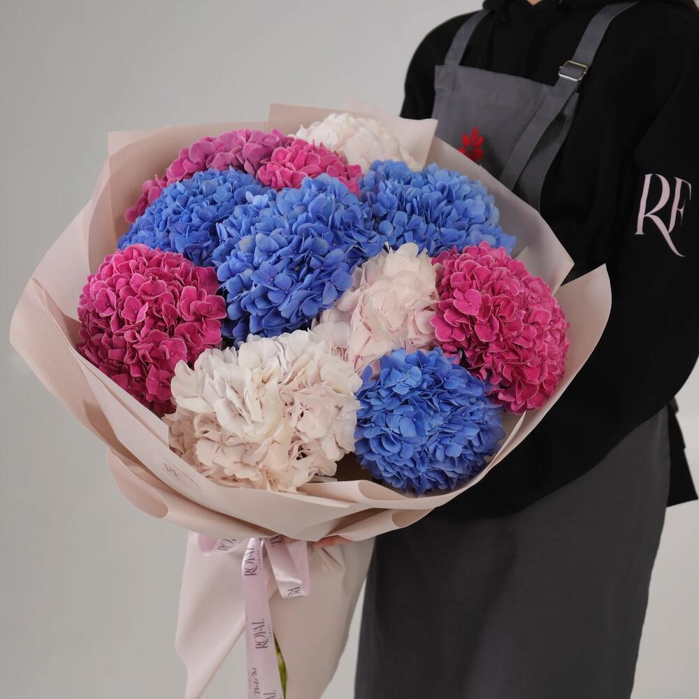 Альстромерии, Гортензии, Кустовые розы, Лизиантусы, Розы, Хризантемы