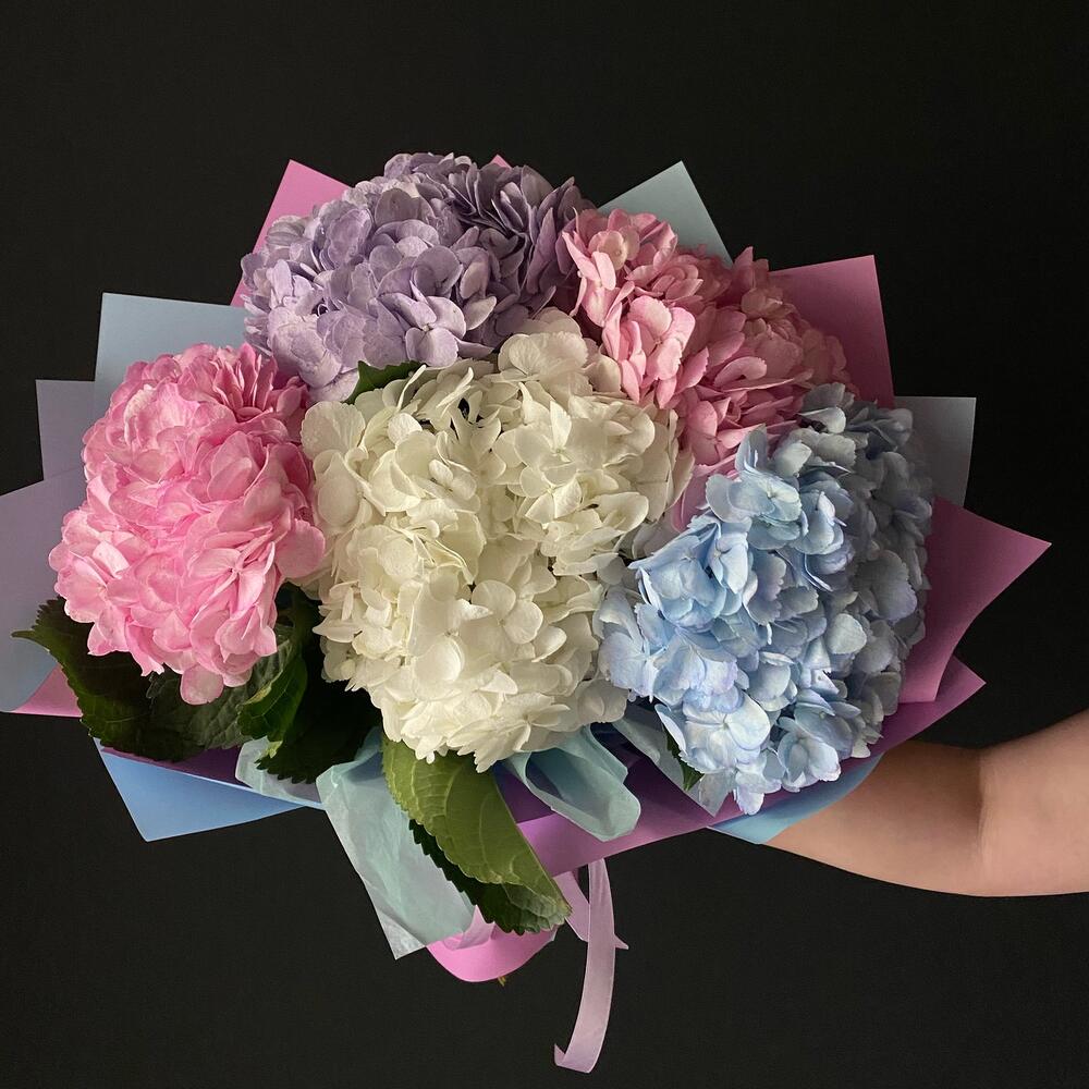 Радужный букет из 5 гортензий, создай настроение ProvenceFliwers