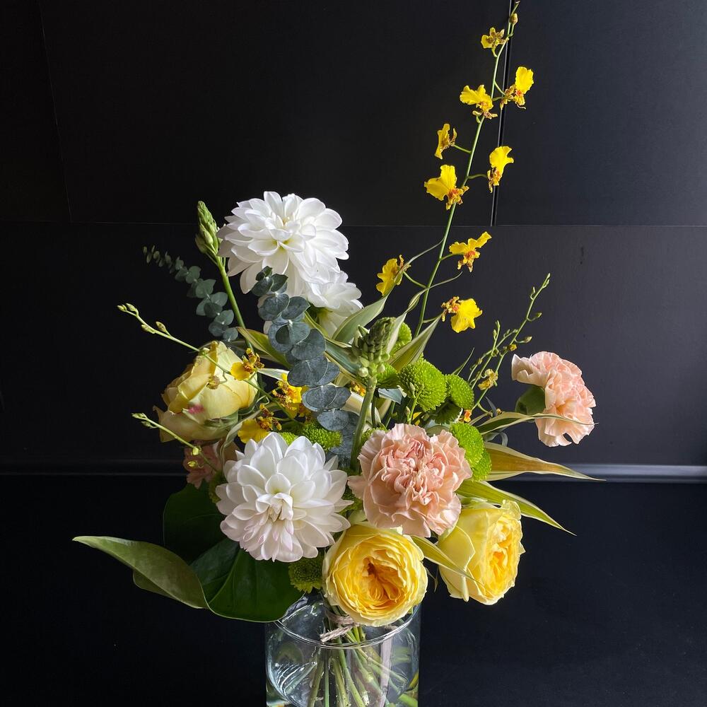 Альстромерии, Гвоздики, Кустовые розы, Лизиантусы, Розы, Хризантемы