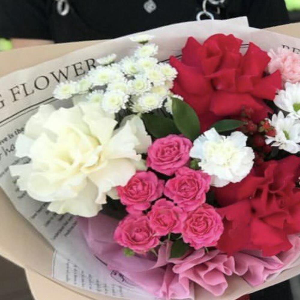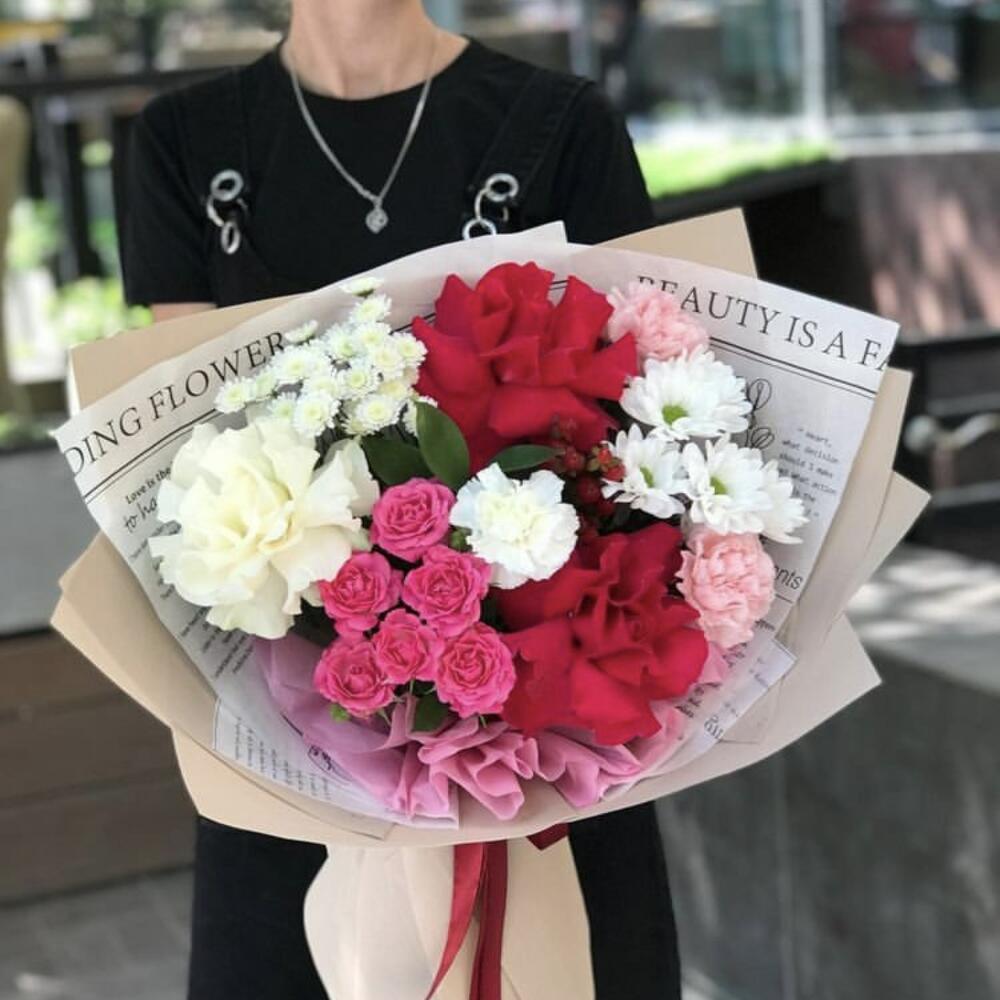 Гвоздики, Кустовые розы, Пионовидные розы, Розы