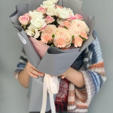 Гвоздики, Кустовые розы, Лизиантусы, Пионовидные розы, Розы