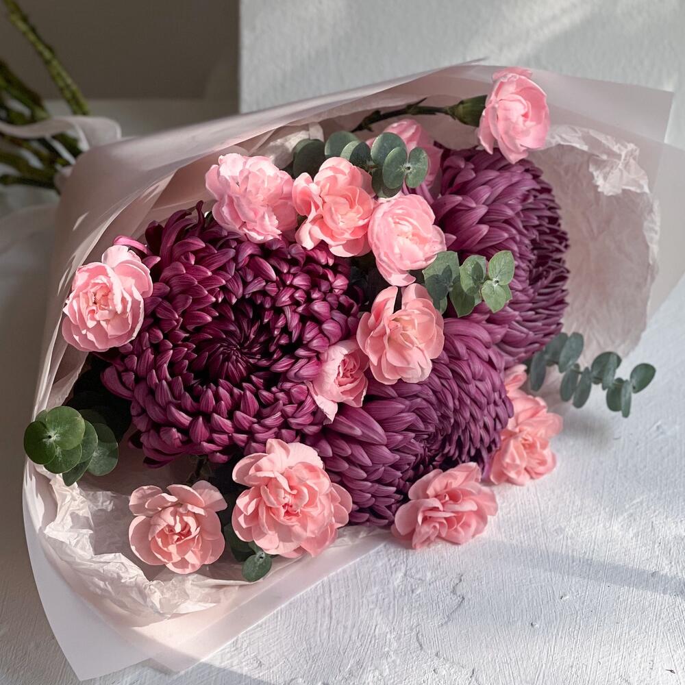 Гвоздики, Кустовые розы, Пионовидные розы, Розы