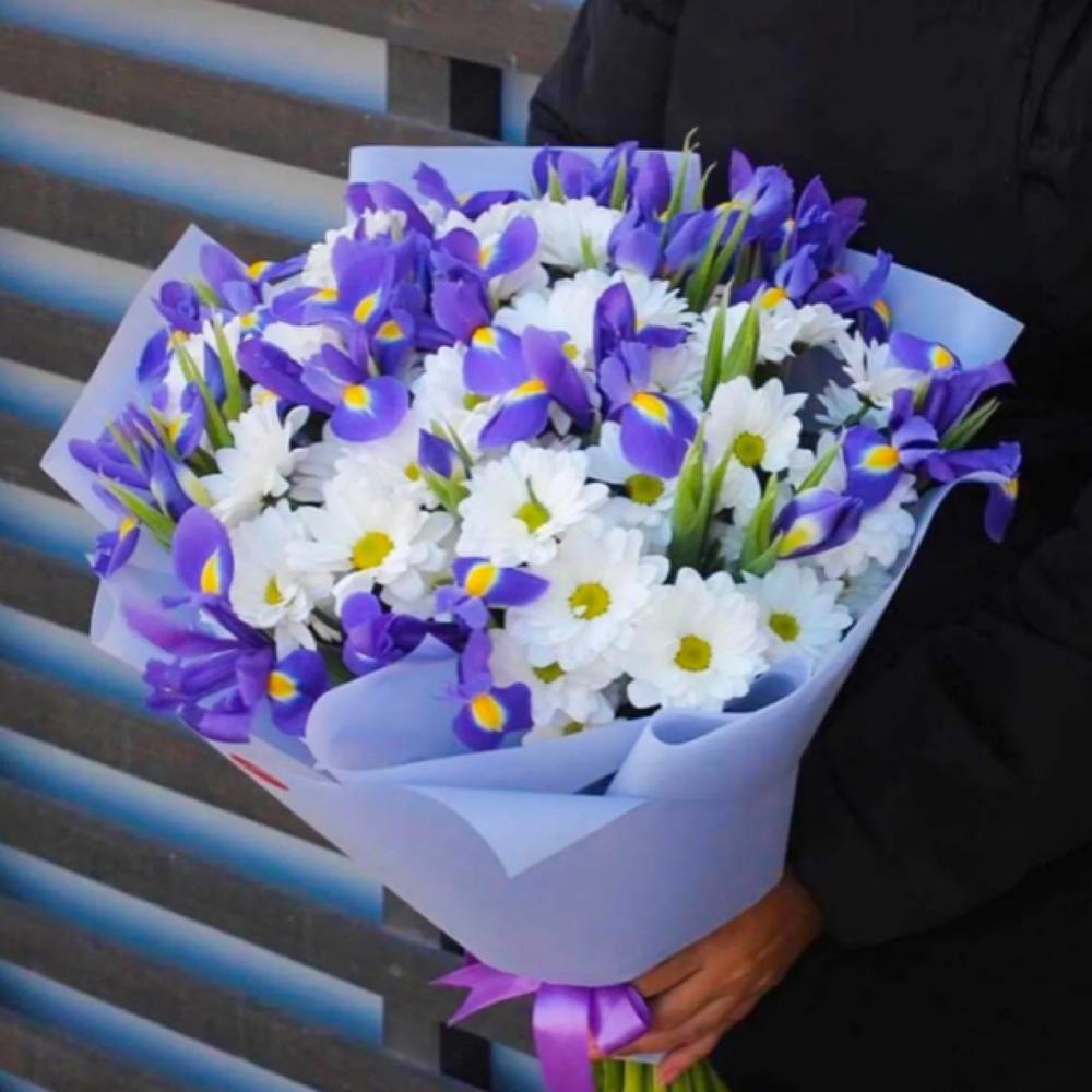 Букет из ирисов и ромашек