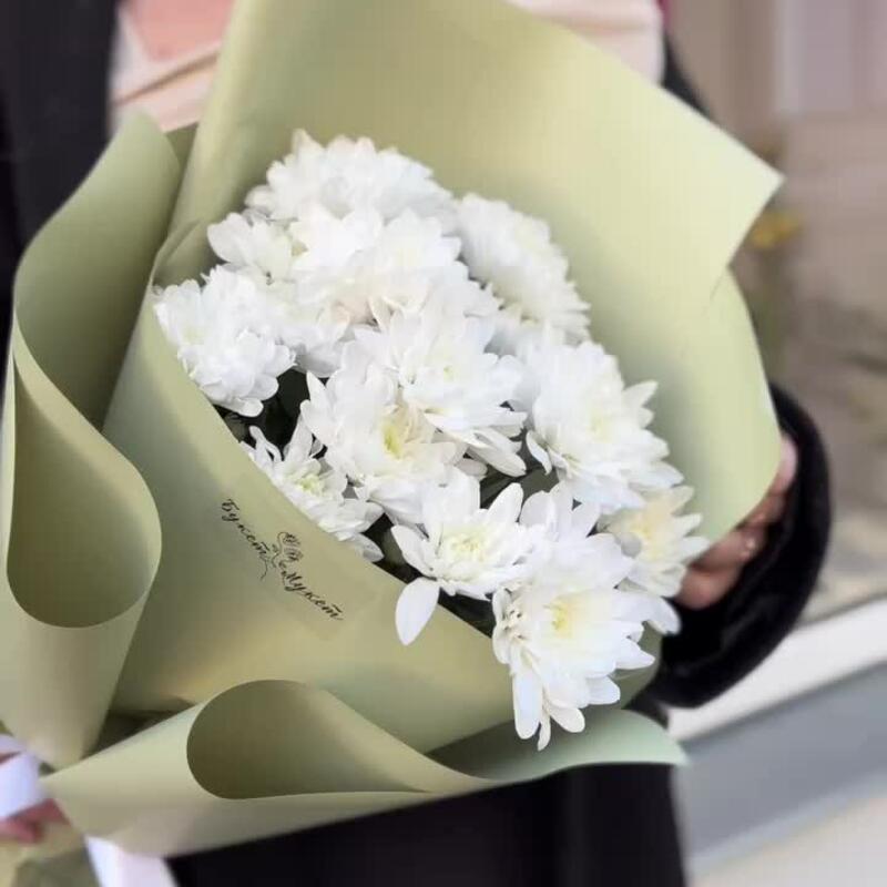 Объемный букет с очаровательными белыми хризантемами!В зависимости от сезонности цветов, мы можем немного изменить состав букета, сохраняя гамму и настроение композиции.Так как все цветы индивидуальны, как люди, букеты с одним и тем же составом тоже могут немного отличаться, но мы стараемся максимально приблизиться к картинке. Мы — очень творческая команда и хотим все силы бросить на создание хороших букетов для вас, поэтому ответственность за доставку мы полностью передали в руки команды FlowWow. Поэтому мы только подготавливаем ваши заказы и фотографируем их для вас перед доставкой, а курьеров назначает и контролирует сам агрегатор. Будем благодарны за оценку именно нашей работы, качество композиции и цветка!
