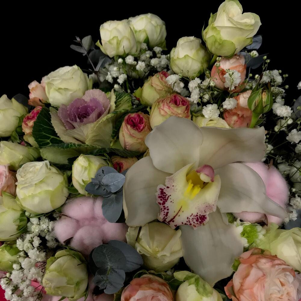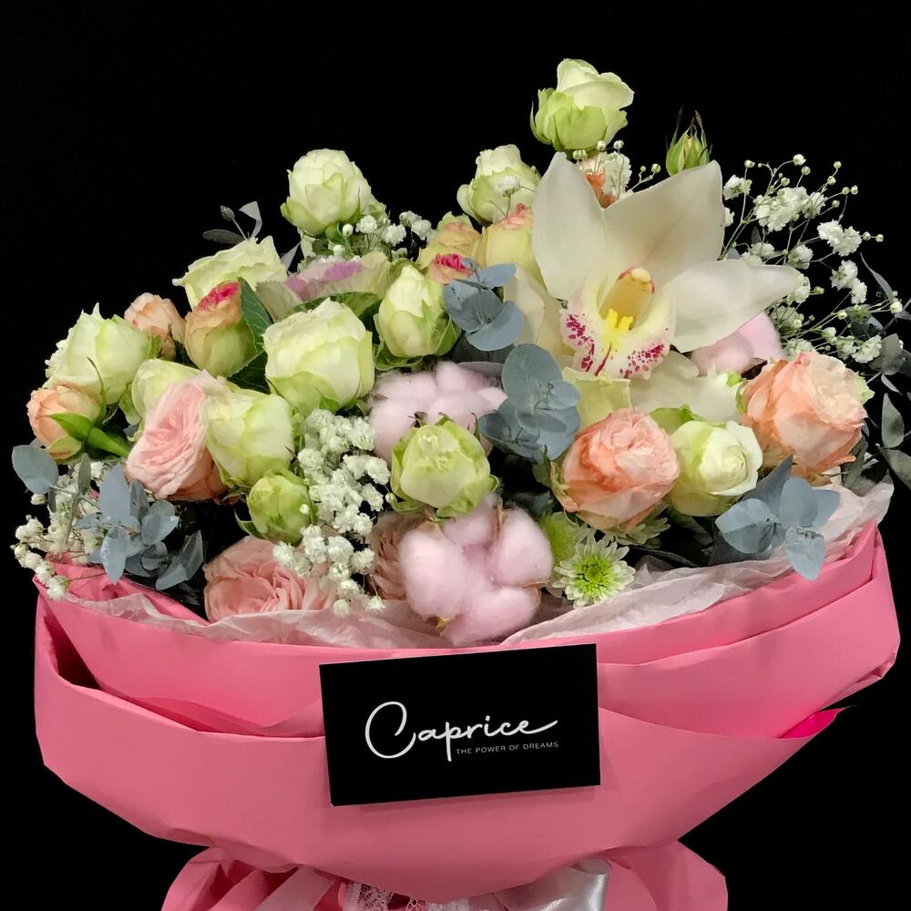 Гвоздики, Кустовые розы, Лизиантусы, Пионовидные розы, Розы