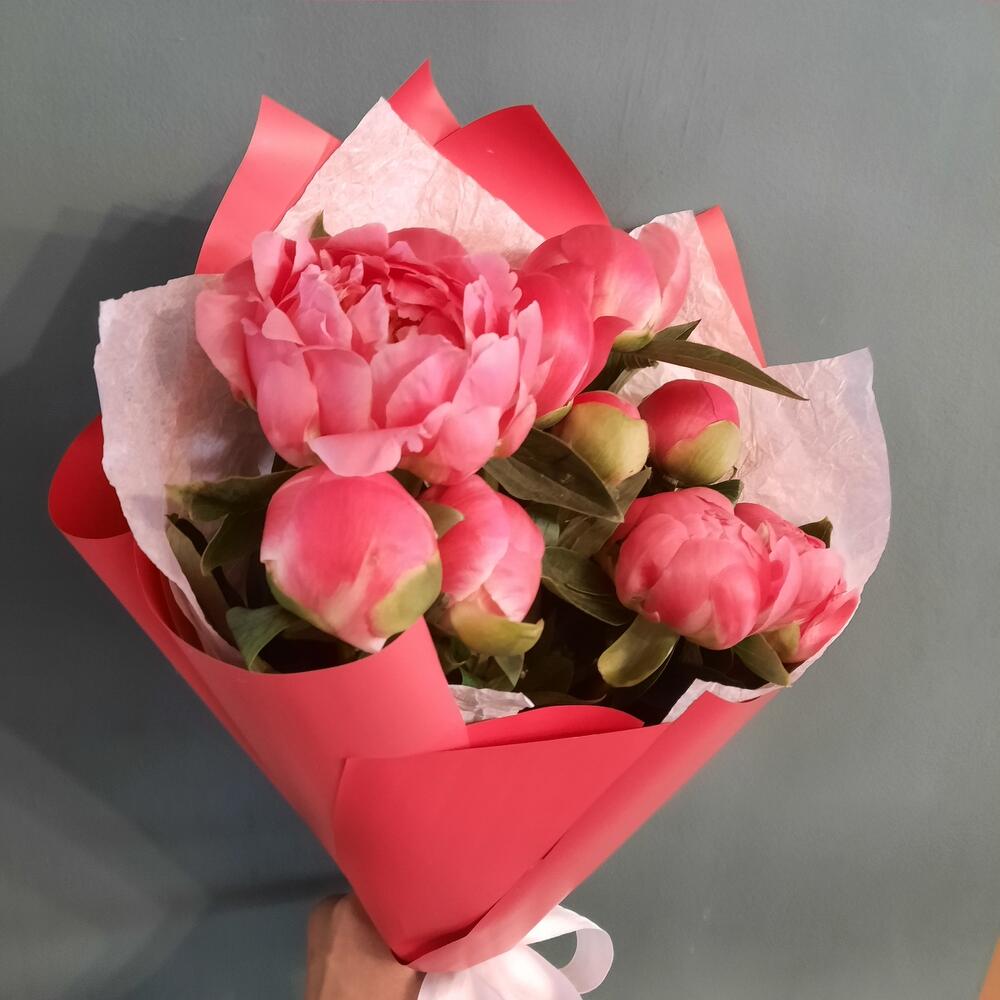 9 коралловых пионов