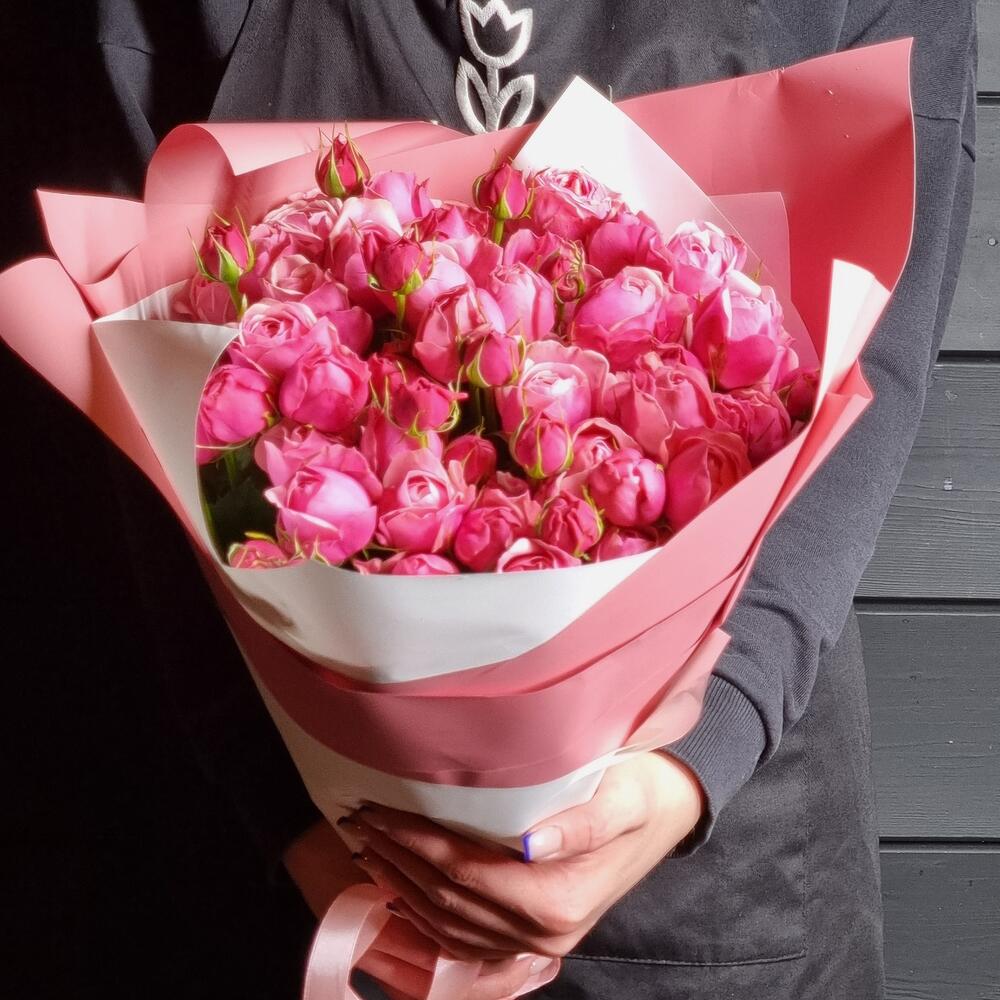 11 кустовых пионовидных роз в дизайнерской упаковке