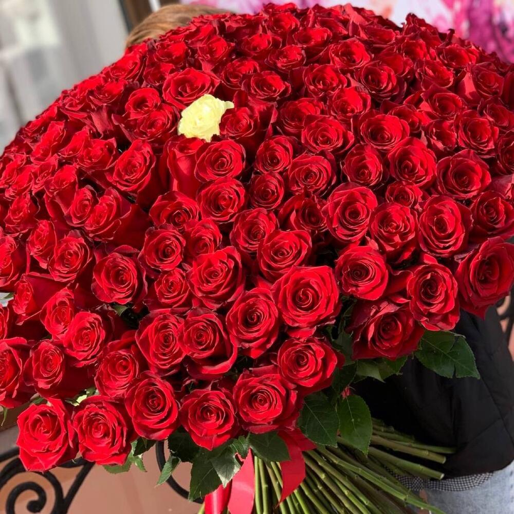 Роза эквадор 90 см – 151 шт.Лента атласная – 1 шт.