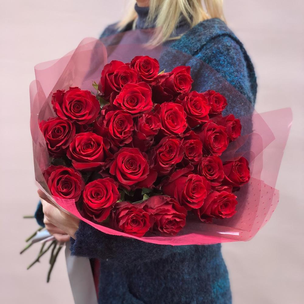25 красных роз 70см