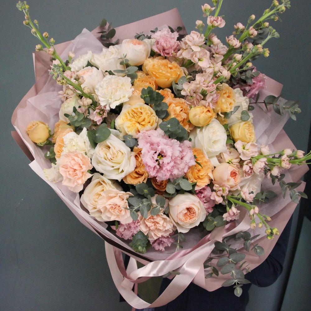 Категорий: Гвоздики, Кустовые розы, Лизиантусы, Пионовидные розы, Розы