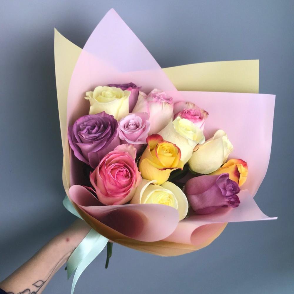 Микс букет из разных оттенков роз. Оформление на вкус флориста . Высота роз 50 см