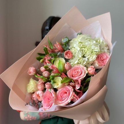 “Эвкалиптическая роскошь” гортензия и пионовидная кустовая роза