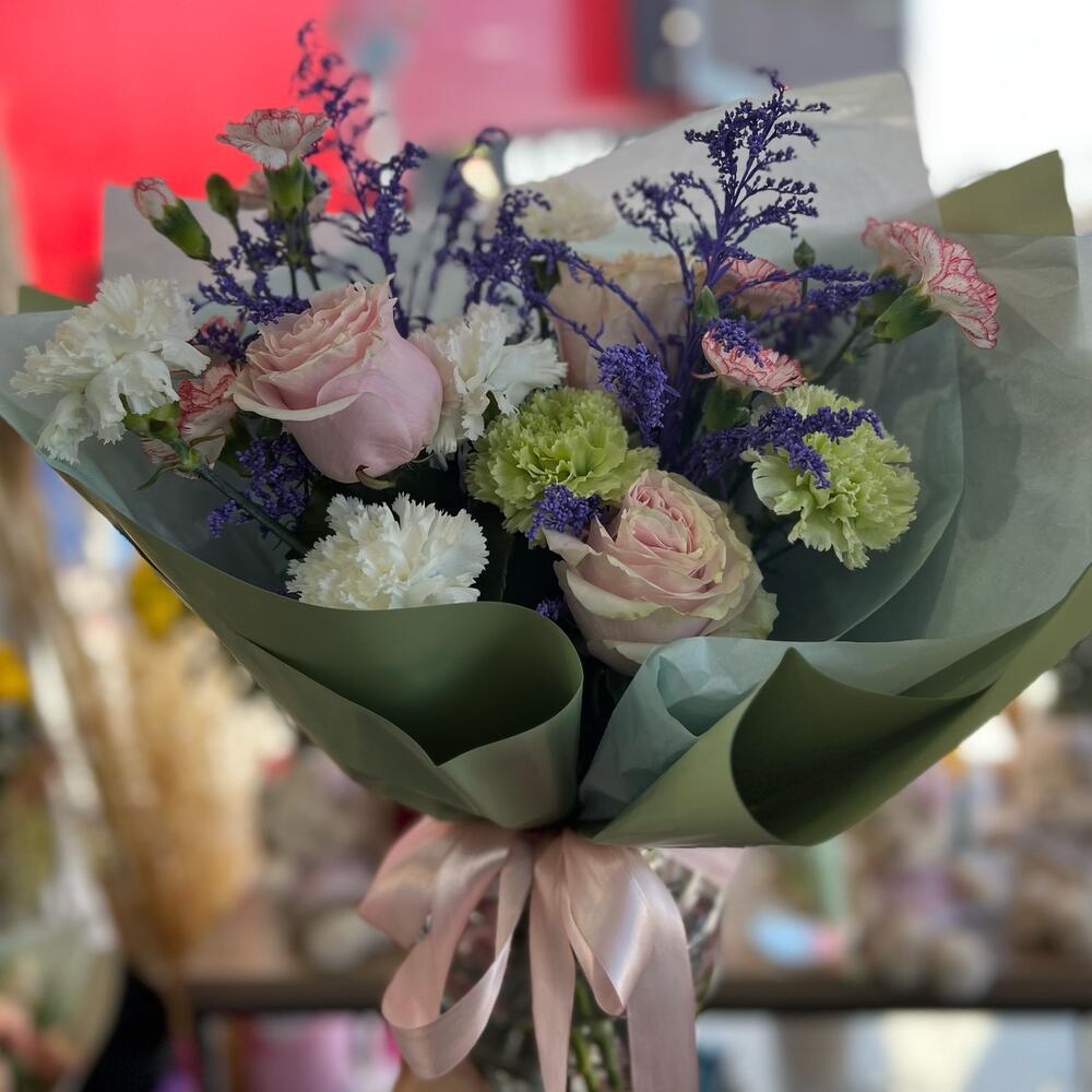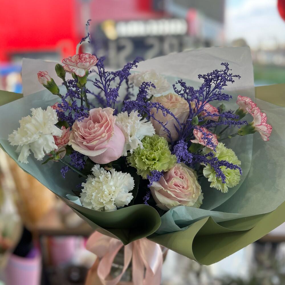 Гвоздики, Кустовые розы, Лизиантусы, Пионовидные розы, Розы