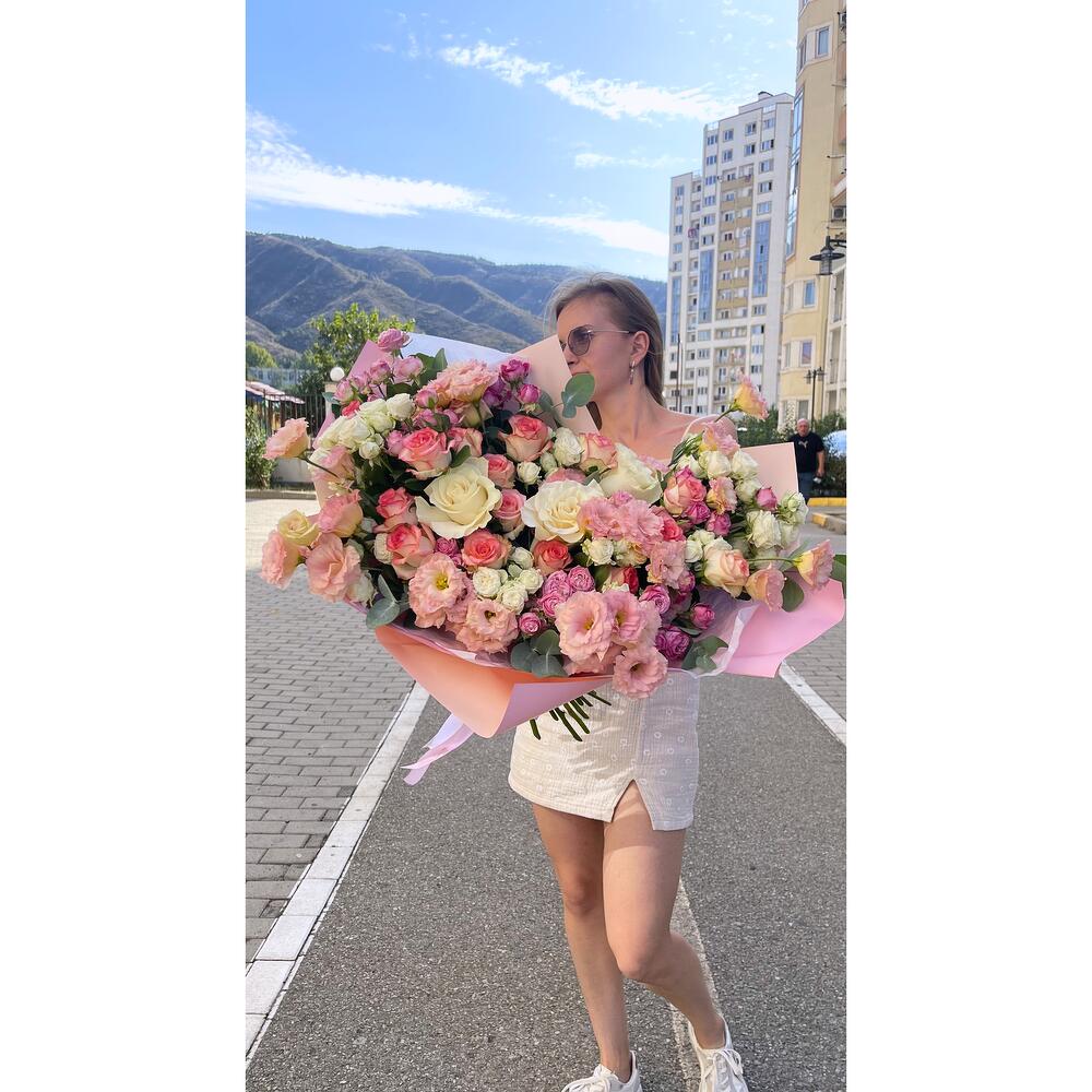 Этот большой микс букет – это источник красоты и радости, который вы можете подарить себе или своим близким. Безупречная свежесть и разнообразие цветов сделают ваш момент незабываемым. Наслаждайтесь цветочным волшебством, которое мы приносим в вашу жизнь. Доставка по городу Тбилиси бесплатная.