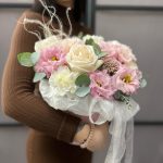 “Атлас☁️” – цветочная композиция с зефиром в деревянном ящике