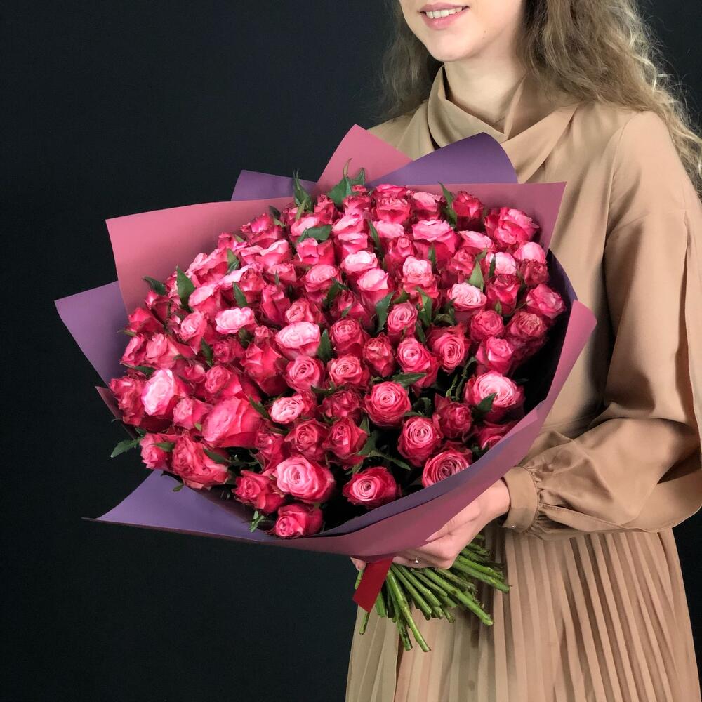 Букет 101 малиновая роза