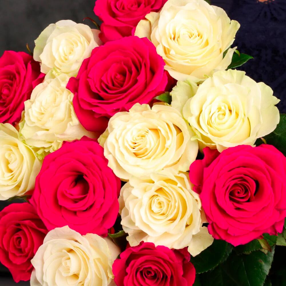 Букет 15 белых и розовых роз