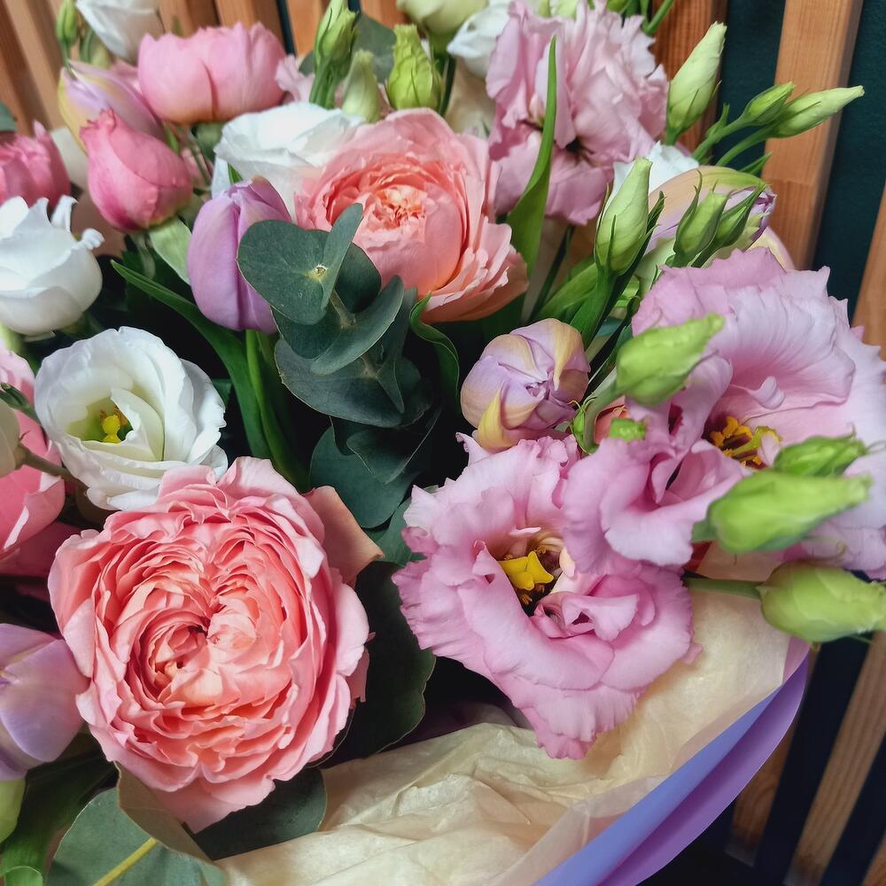Категорий: Кустовые розы, Лизиантусы, Пионовидные розы, Розы, Тюльпаны