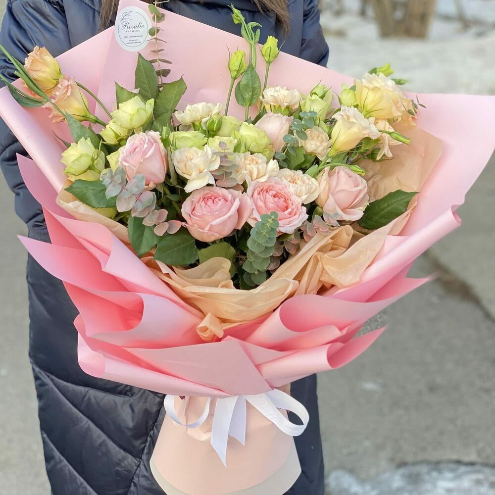 Гвоздики, Кустовые розы, Лизиантусы, Пионовидные розы, Розы