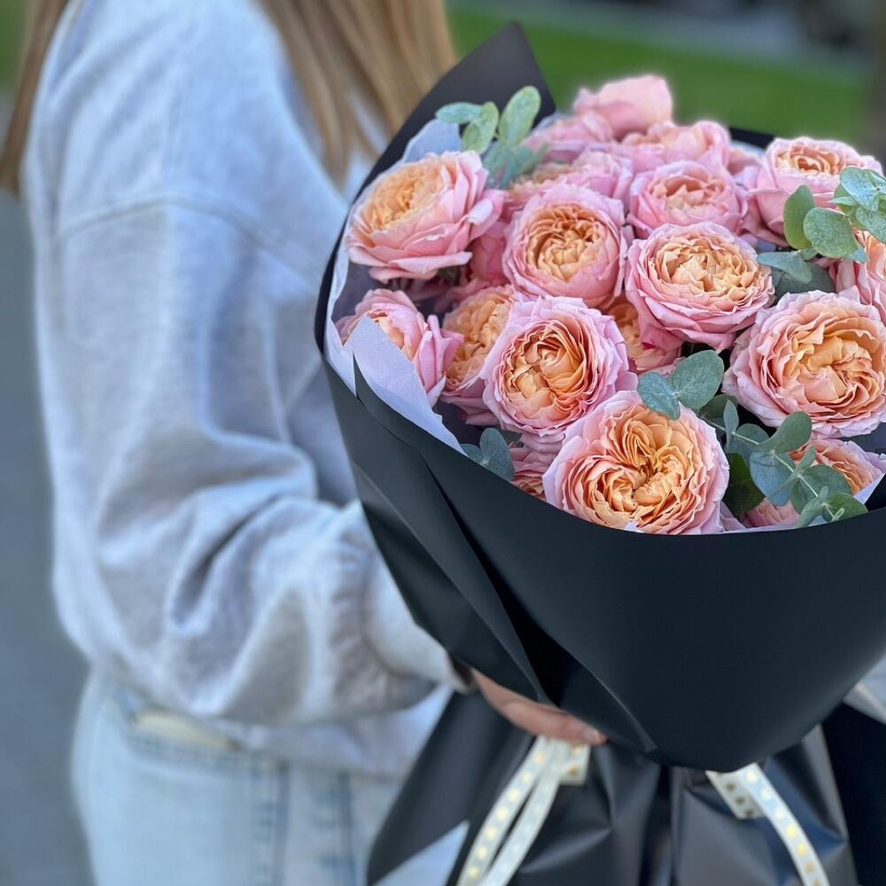 Гвоздики, Кустовые розы, Лизиантусы, Пионовидные розы, Розы
