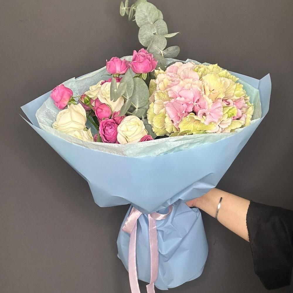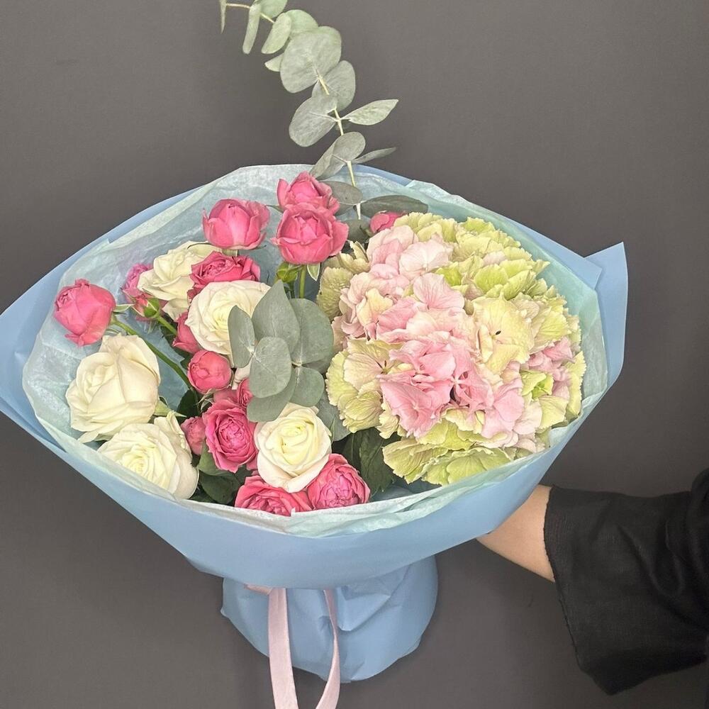 Альстромерии, Кустовые розы, Лизиантусы, Пионовидные розы, Розы, Ромашки