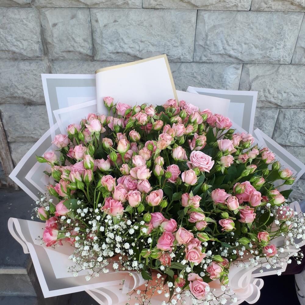 Гвоздики, Кустовые розы, Пионовидные розы, Розы