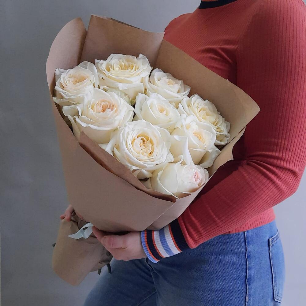 роза канделайт – 9 шт.Упаковка крафт – 1 шт.Лента атласная – 1 шт.