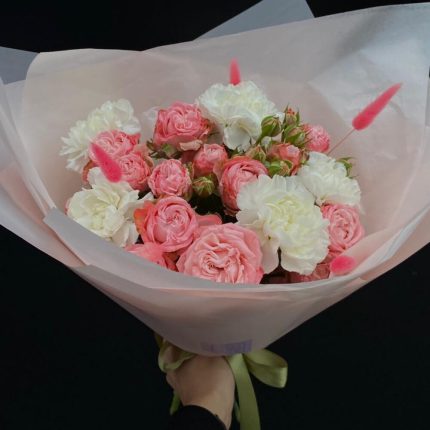 Гвоздики, Пионовидные розы, Розы