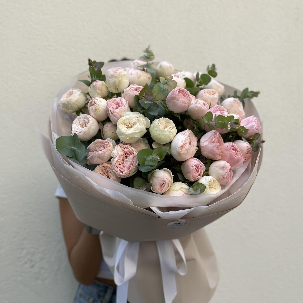 Эвкалипт – 2 шт. пионовидные спрей роза – 15 шт.