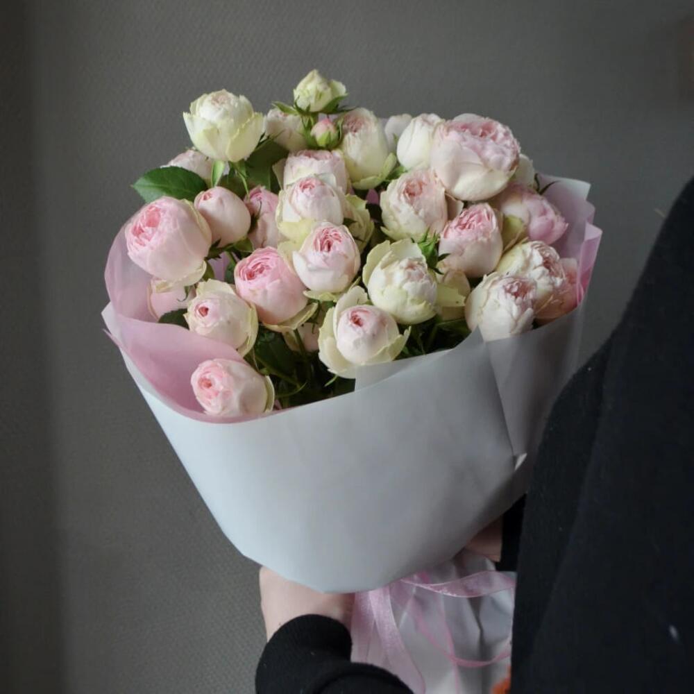 Альстромерии, Кустовые розы, Лизиантусы, Пионовидные розы, Розы, Ромашки
