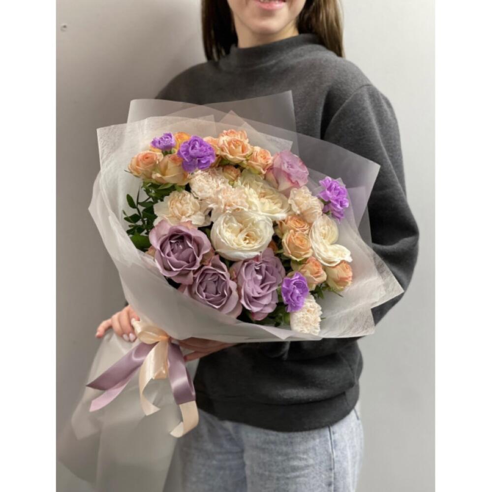 Гвоздики, Кустовые розы, Лизиантусы, Пионовидные розы, Розы