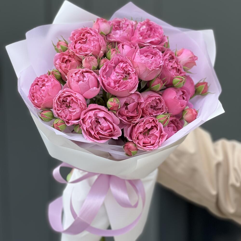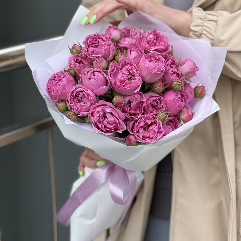 Букет из 5 веточек кустовых пионовидных роз в оформлении!