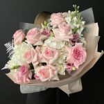 Букет с пионовидными розами и диантусами