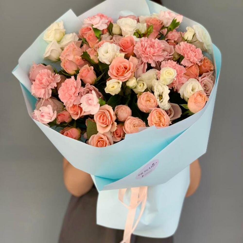Альстромерии, Кустовые розы, Лизиантусы, Пионовидные розы, Розы, Ромашки