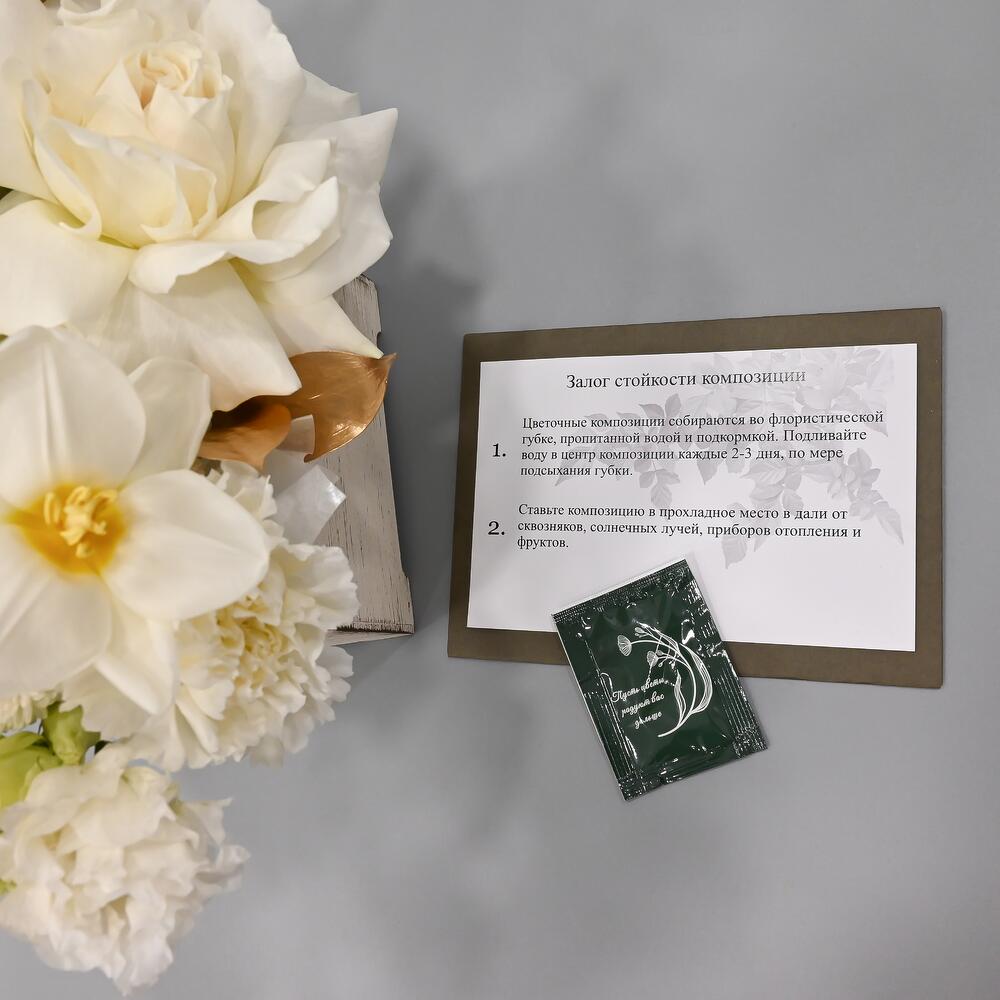 “Атлас☁️” – цветочная композиция с зефиром в деревянном ящике