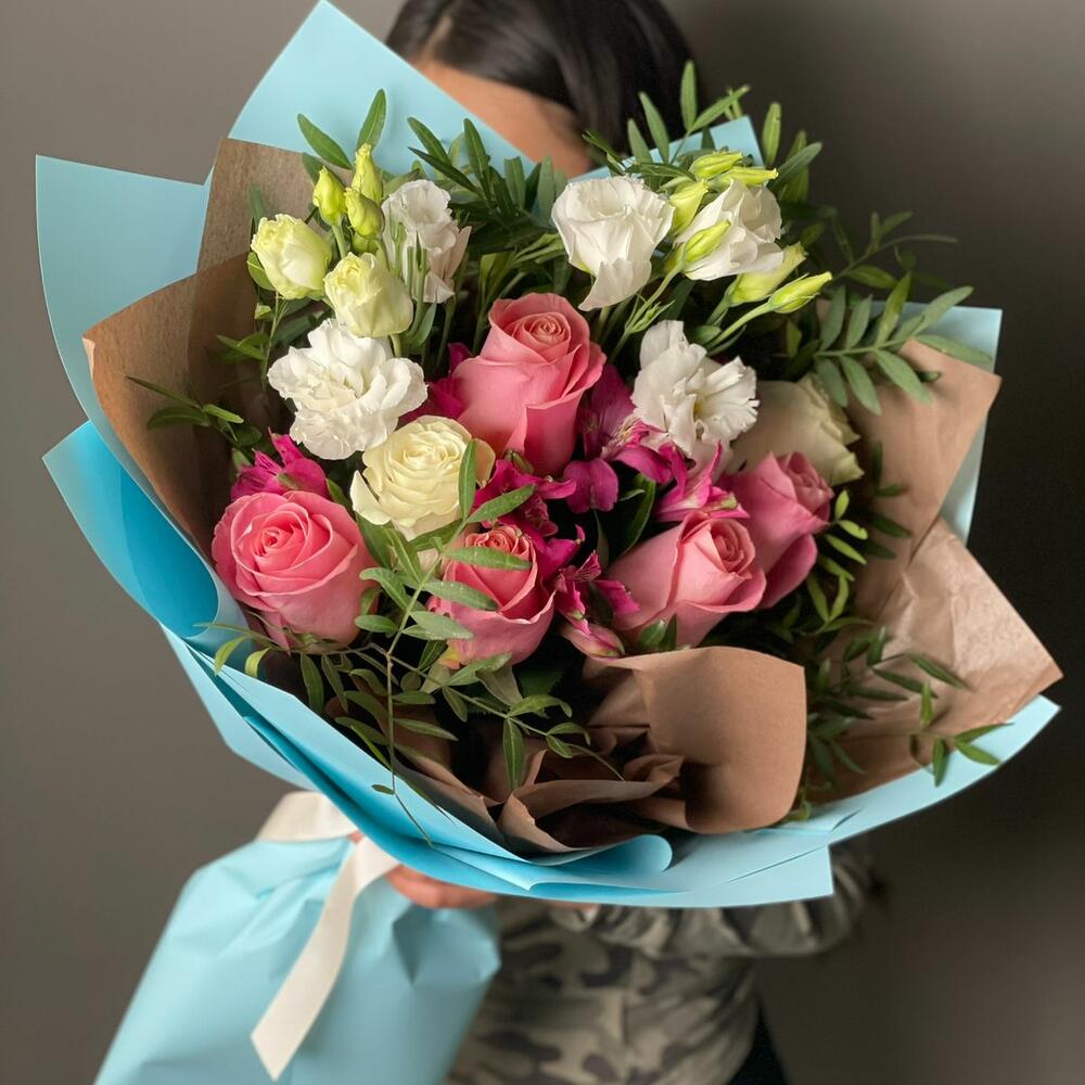 Гвоздики, Лизиантусы, Розы, Тюльпаны