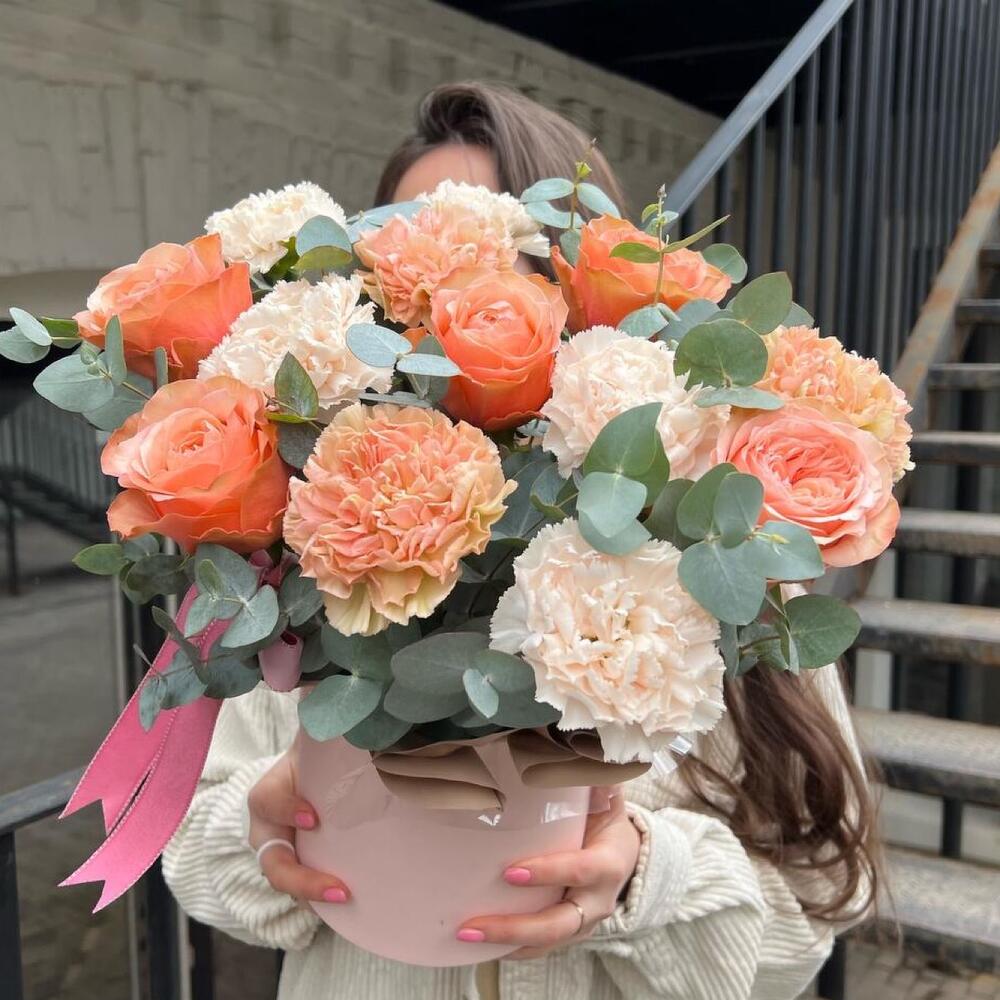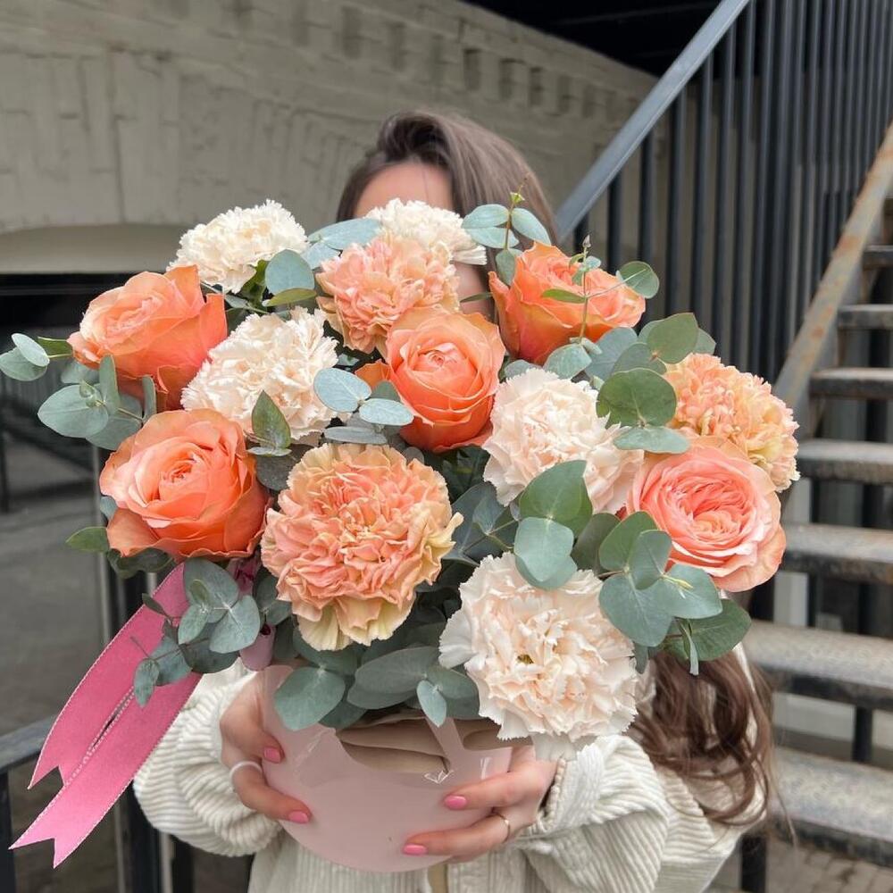 Гвоздики, Кустовые розы, Лизиантусы, Пионовидные розы, Розы