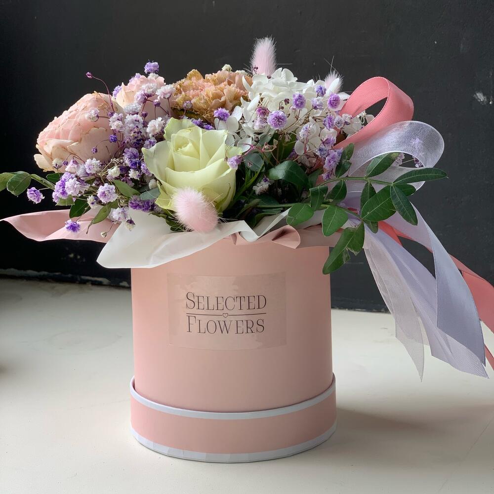 Альстромерии, Гортензии, Кустовые розы, Лизиантусы, Розы, Хризантемы