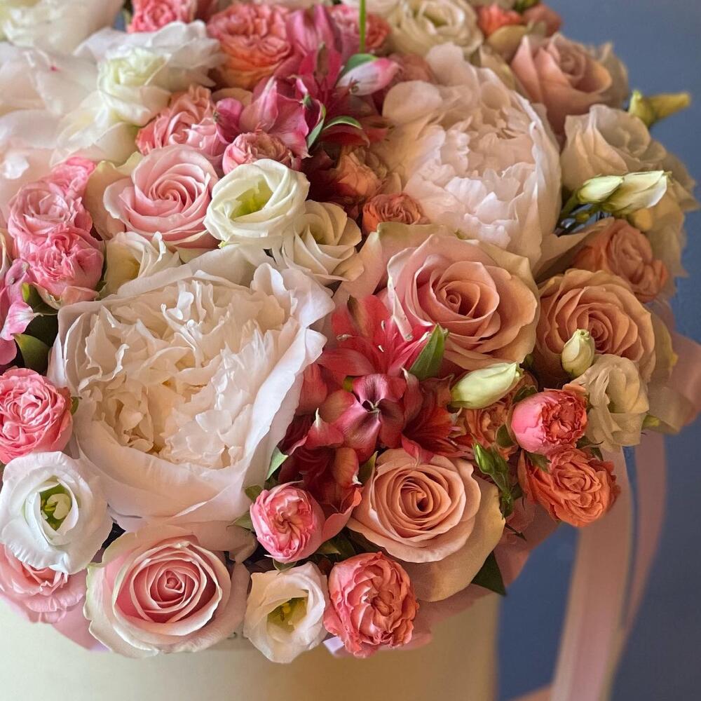 Стильная коробка с пионами и другими цветами , идеальное сочетание оттенков и фактур. Идеальный вариант для тех, кто любит стильное и эффектное.Мы подпишем открытку и вовремя доставим адресату .
