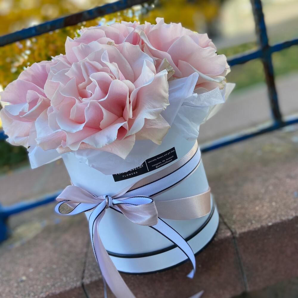 Композиция из французских роз в шляпной коробке