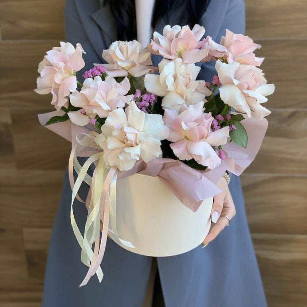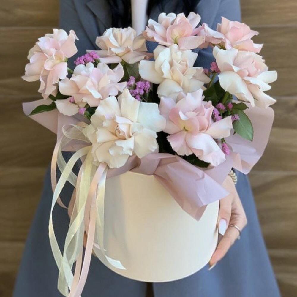 Альстромерии, Гвоздики, Кустовые розы, Лизиантусы, Розы, Хризантемы