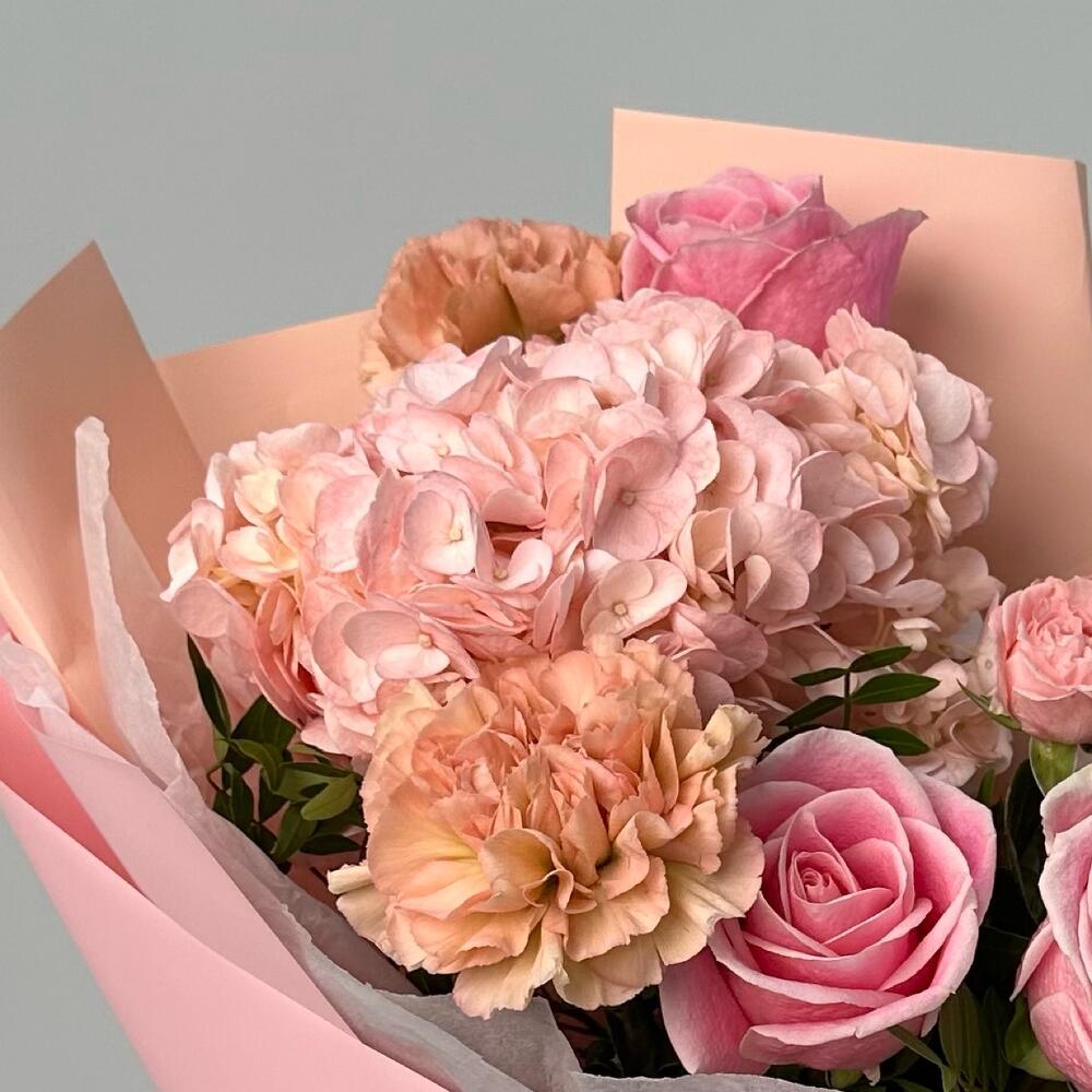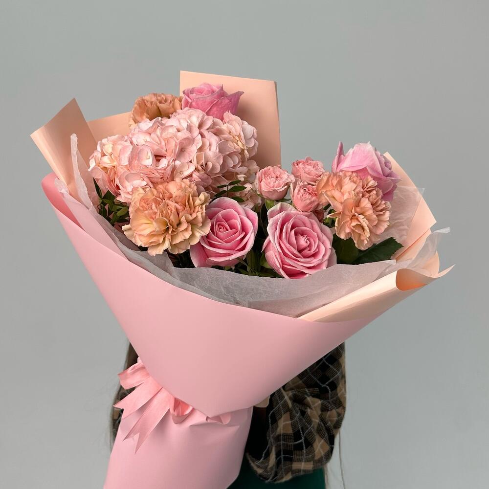 Гвоздики, Лизиантусы, Розы, Тюльпаны
